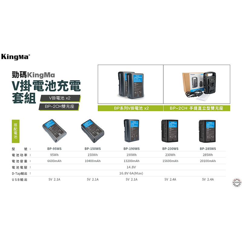 | 商品標準配備包含 | KingMa BP-95WS V掛電池*1 |