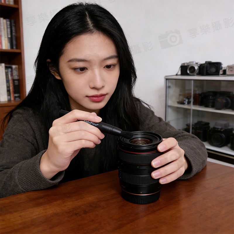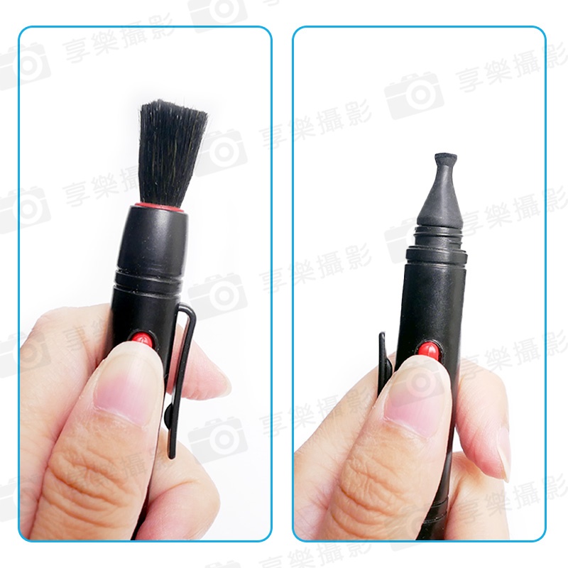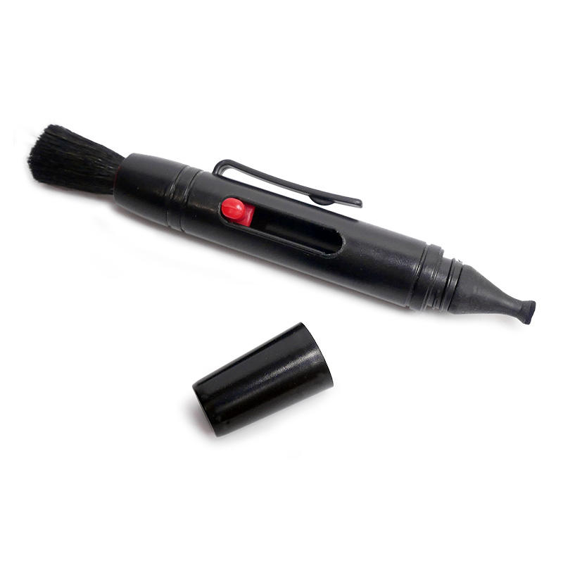 1.先以吹球或毛刷將大型顆粒灰塵去除 (以避免使用拭鏡筆時壓住灰塵刮表面)