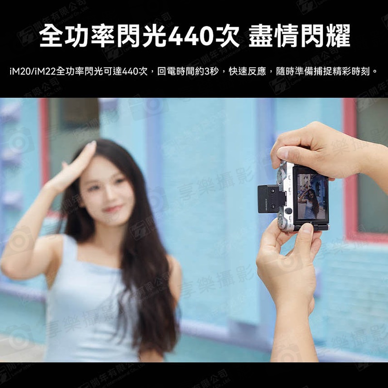 iM20/iM22全功率閃光可達440次,回電時間約3秒,快速反應,隨時準備捕捉精彩時刻