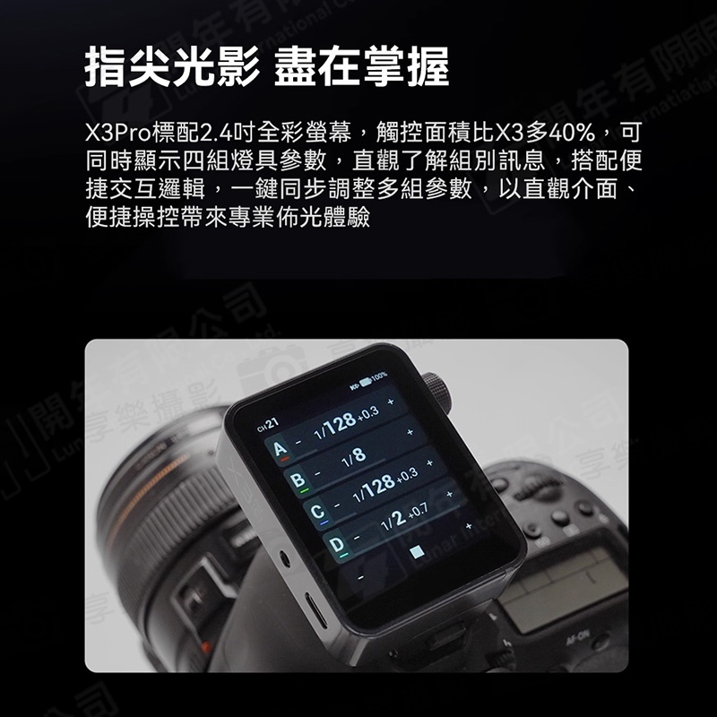 觸控面積比X3多40%,可同時顯示四組燈具參數,以值觀介面、便捷操控帶來專業不光體驗