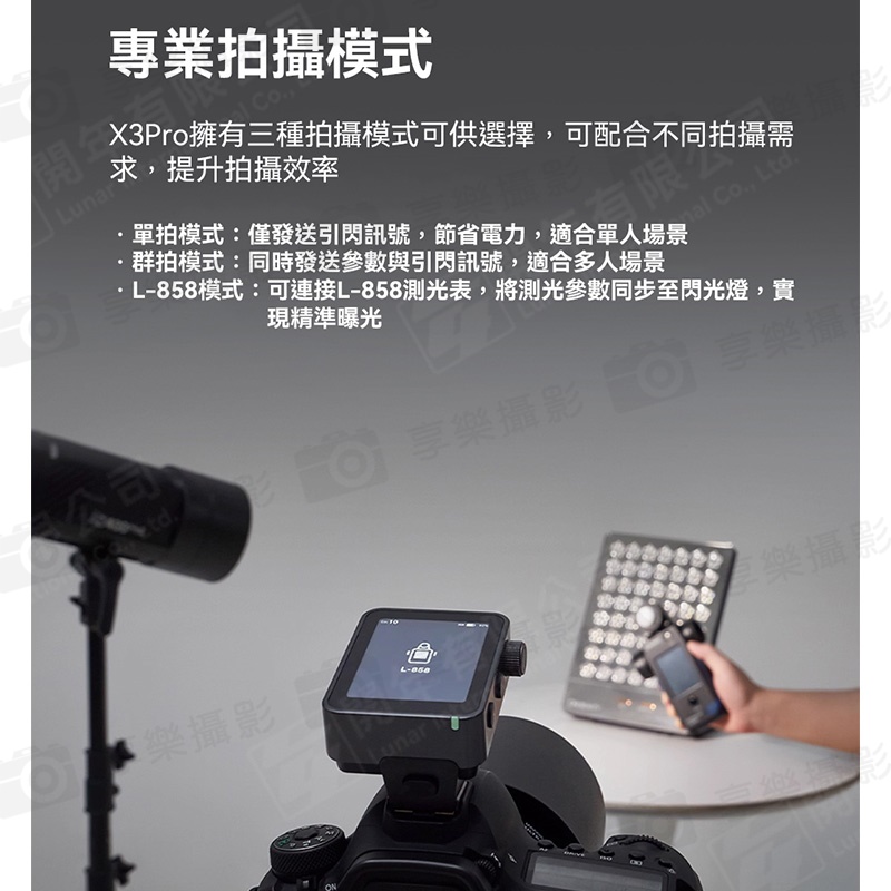 單拍模式、群拍模式、L-858模式,輕鬆配合不同拍攝需求,提升拍攝效率