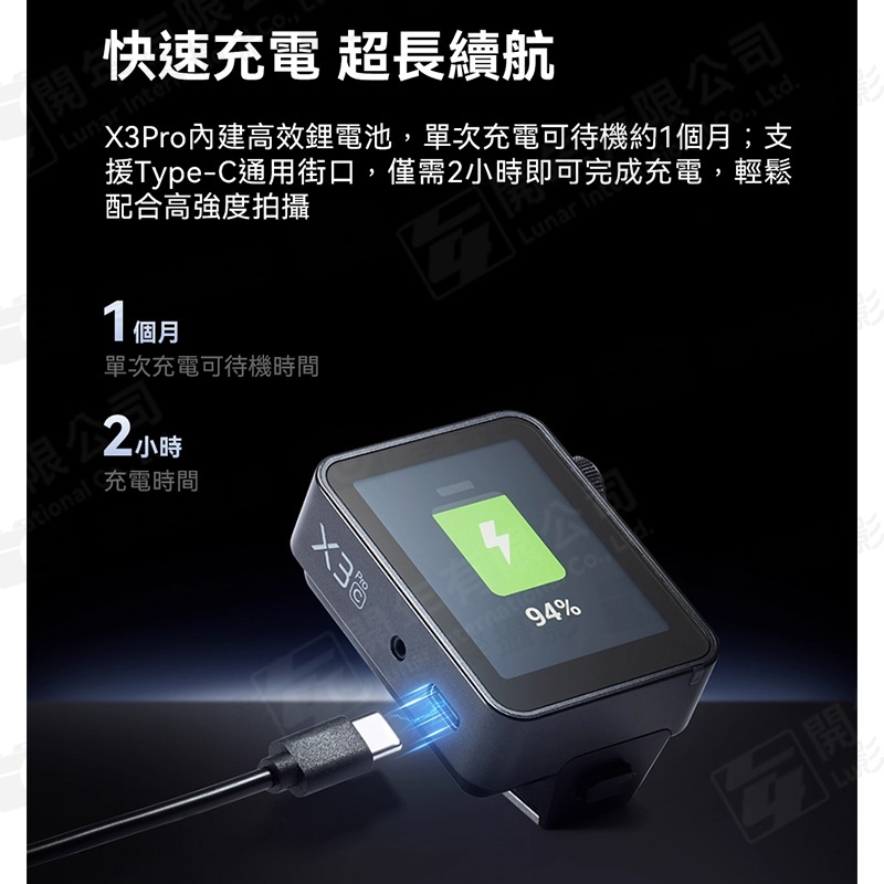 單次充電可待機約1個月,支援Type-C通用接口,僅需2小時即可完成充電