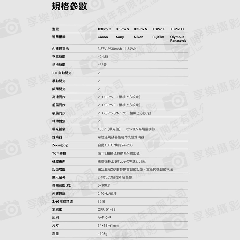 高速同步:√(X3Pro F:相機上方設定)