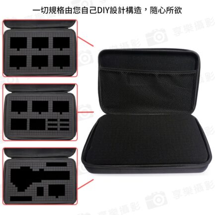 DIY收納包將內襯設計升級為自由海綿格,可以將每一個格子抽出,形成各種不同的形狀來放置您的設備,一切規格由您自己DIY設計構造,隨心所欲