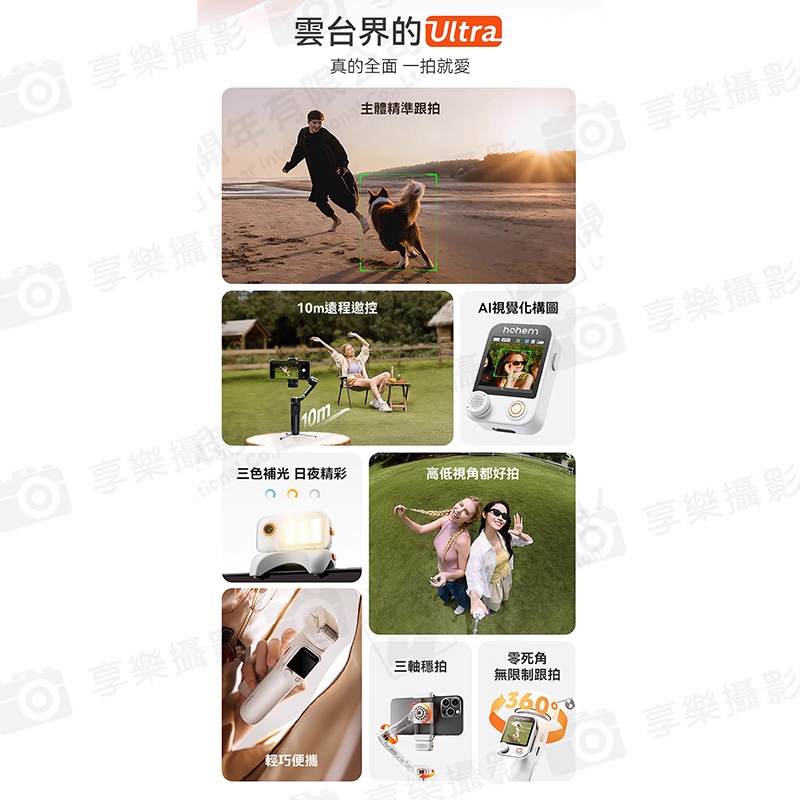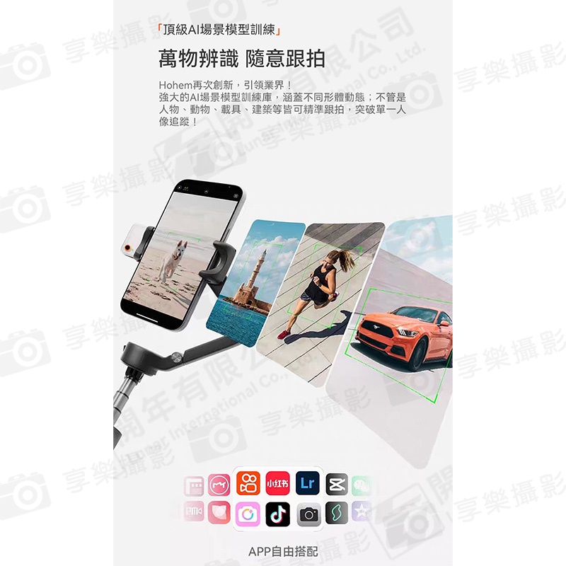 Hohem再次創新,引領業界!強大的AI場景模型訓練庫,涵蓋不同形體動態;不管是人物、動物、載具、建築等皆可精準跟拍,突破單一人像追蹤!