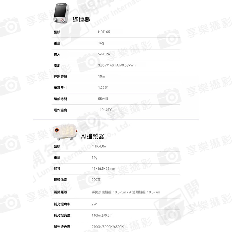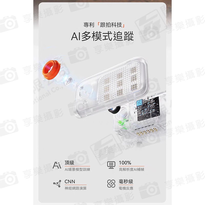 續航時間:約9小時(未啟用AI追蹤器)/約4小時(AI追蹤器 補光燈)