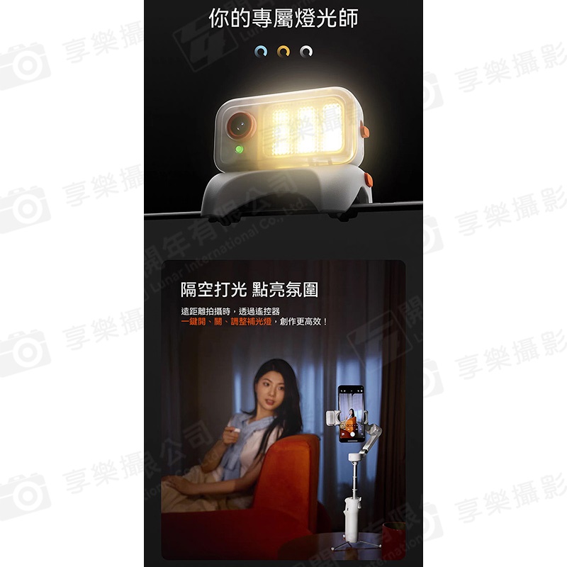 遠距離拍攝時,透過遙控器一鍵開、關、調整補光燈,創作更高效!
