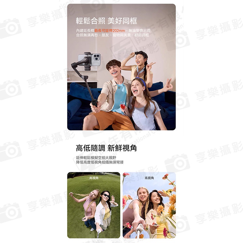 內建延長桿最長可延伸202mm,無論聚會出遊、合照無須再愁,朋友、寵物與美景,輕鬆同框