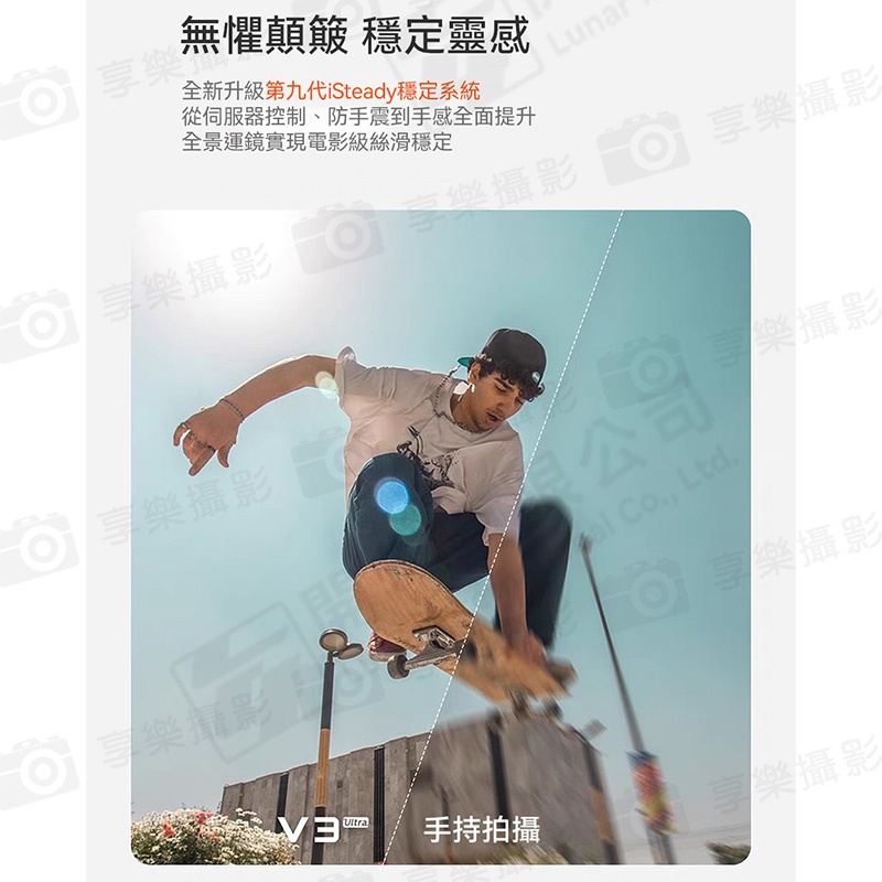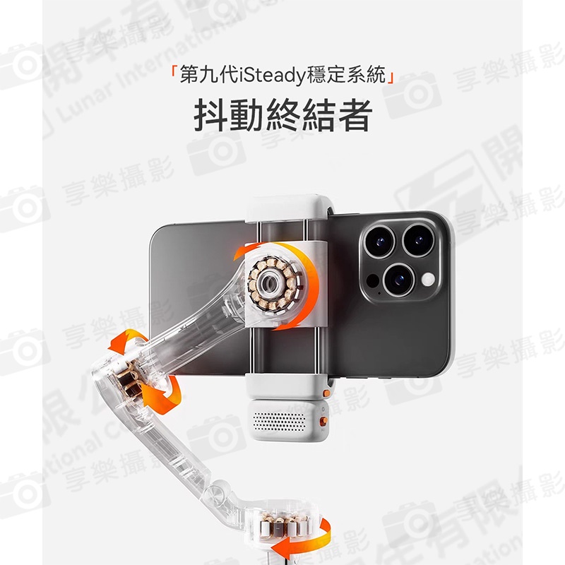 全新升級第九代iSteady穩定系統,從伺服器控制、防手震到手感全面提升,全景運鏡實現電影級絲滑穩定