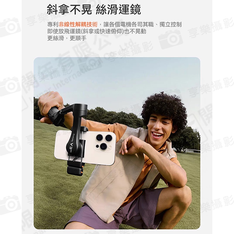 專利非線性解偶技術,讓各個電機各司其職、獨立控制,即使放飛運鏡(斜拿或快速俯仰)也不晃動,更絲滑,更順手