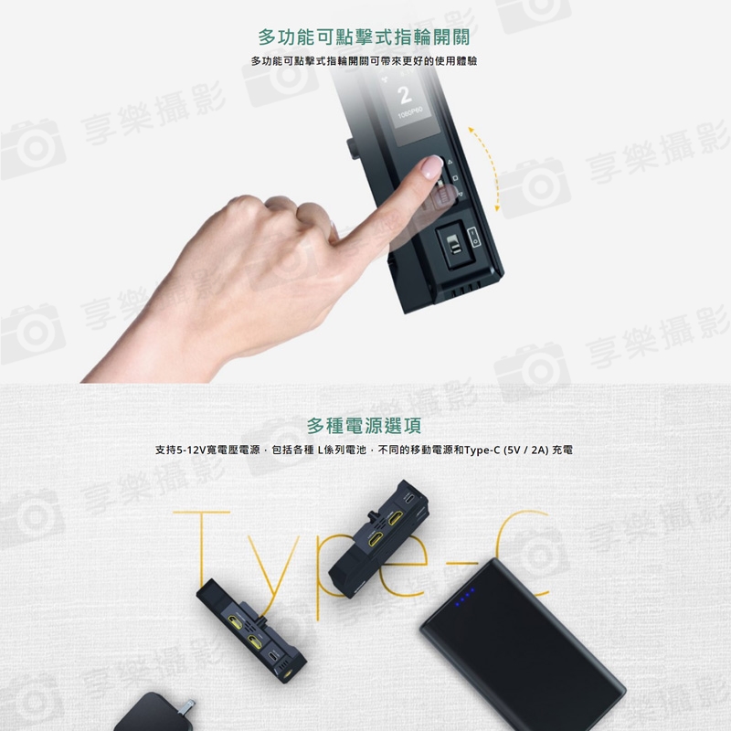 支持5-12V寬電壓電源,包括各種L系列電池,不同的移動電源和Type-C(5V/2A)充電