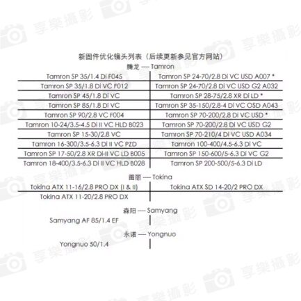 兼容鏡頭:C家/適馬/騰龍/圖麗等EF卡口鏡頭