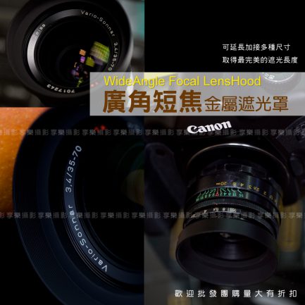 中廣角,標準,長焦的前面都可以再連接遮光罩,例如49mm接58mm,也可以蓋58mm的蓋子,對於擁有大量手動鏡的玩家非常方便!可自由變換長度。