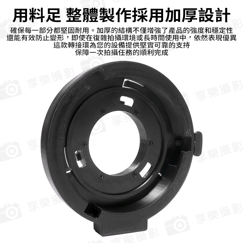 確保每一部分都堅固耐用。加厚的結構不僅增強了產品的強度和穩定性,還能有效防止變形,即使在復雜拍攝環境或長時間使用中依然表現優異,這款轉接環為您的設備提供堅實可靠的支持,保障一次拍攝任務的順利完成