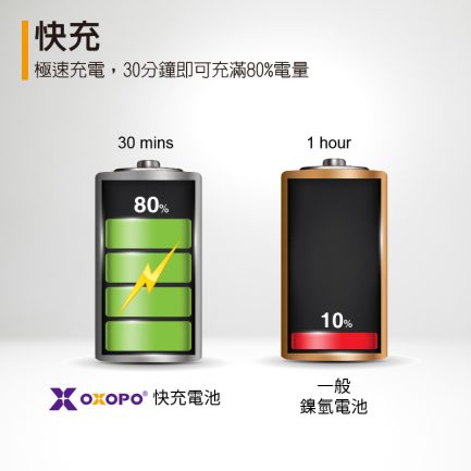 OXOPO鋰電池相較市面上3號/4號鎳氫充電電池: