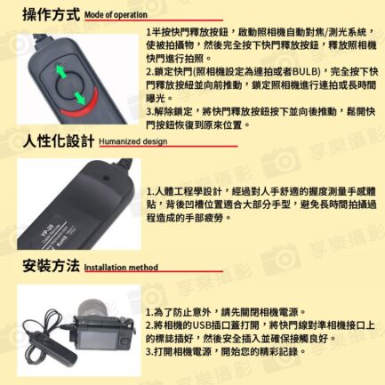 夜景或煙火拍攝,長時曝光,商品拍攝,任何慢速快門必備,防止快門按壓對於機身的振動