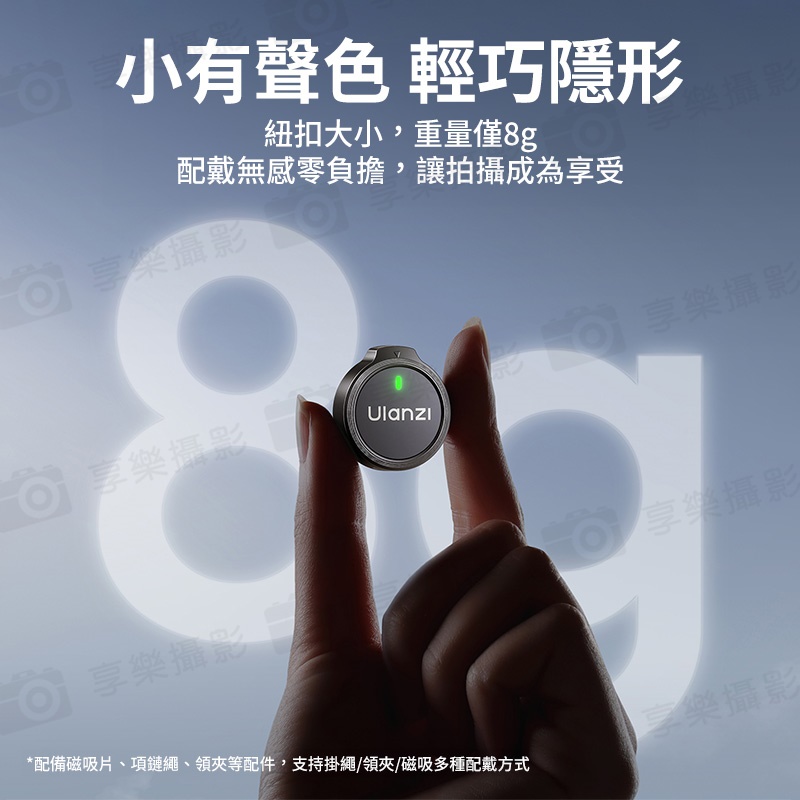 紐扣大小,重量僅8g,配戴無感零負擔,讓拍攝成為享受