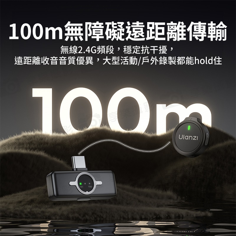 無線2.4G頻段,穩定抗干擾,遠距離收音音質優異,大型活動/戶外錄製都能hold住