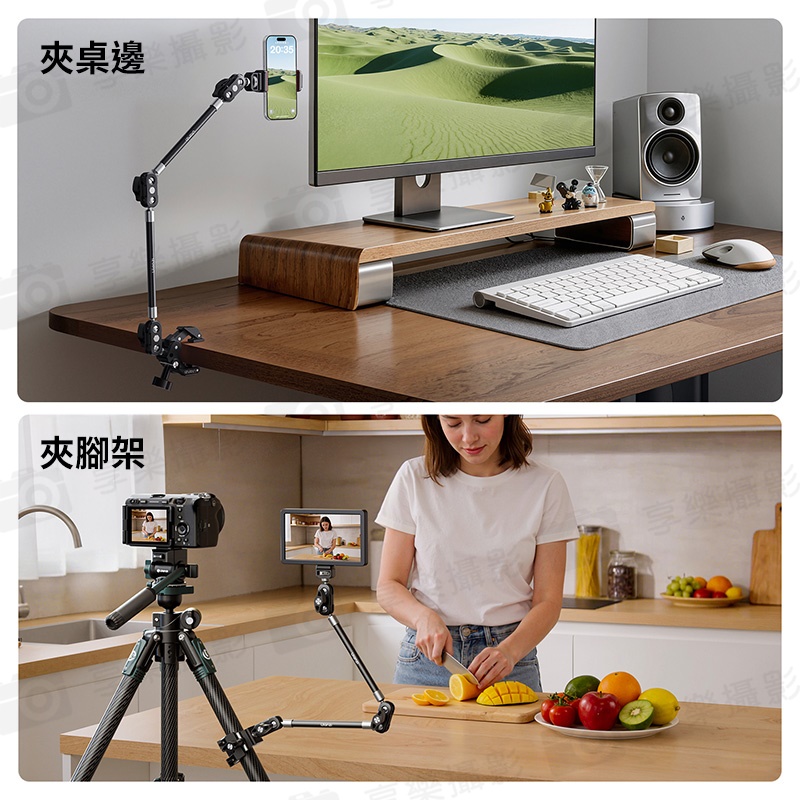 安全支撐運動相機、手機、卡片相機、監視器、小型燈光等設備
