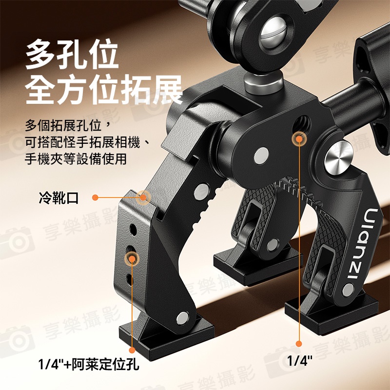 多個拓展孔位,可搭配怪手拓展相機、手機夾、監視器等設備使用