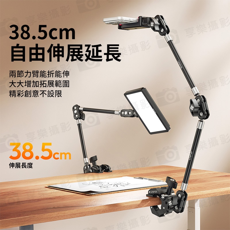 兩節力臂能折能伸,大大增加拓展範圍,精彩創意不設限
