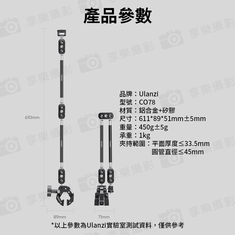 *以上參數為Ulanzi實驗室測試資料,僅供參考