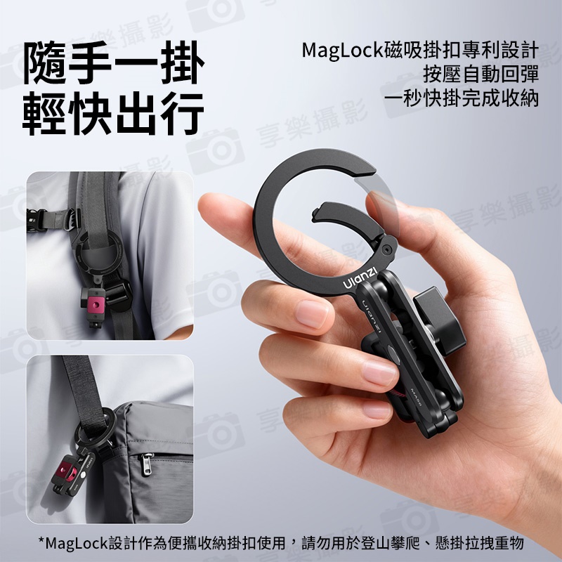 *MagLock設計作為便攜收納掛扣使用,請勿用於登山攀爬、懸掛拉拽重物