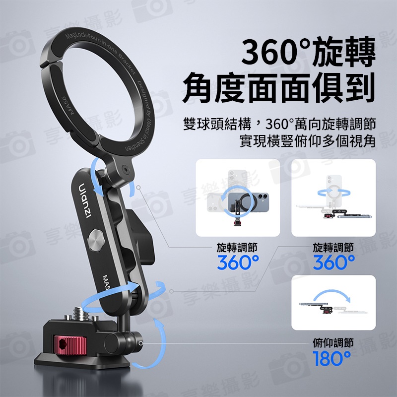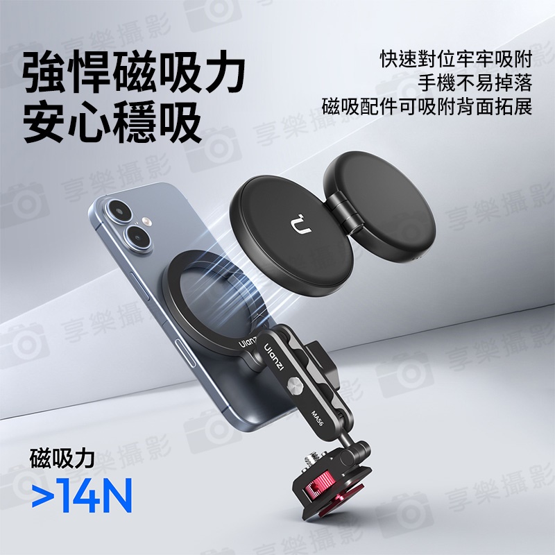 快速對位牢牢吸附,手機不易掉落,磁吸配件可吸附背面拓展,穩定創作遊刃有餘