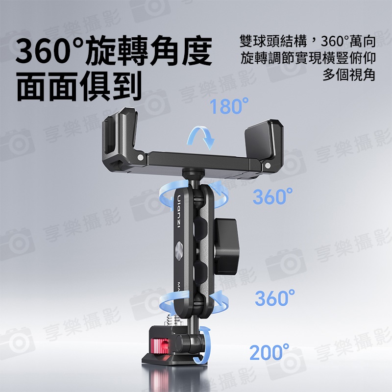 雙球頭結構,360°萬向旋轉調節,實現橫豎俯仰多個視角