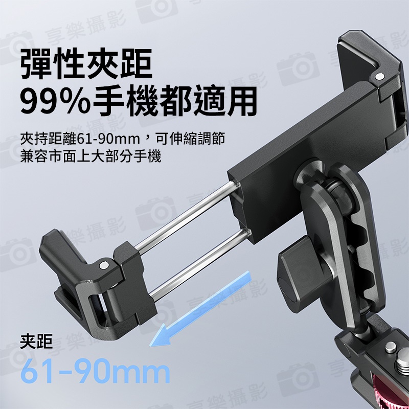 夾持距離61-90mm,可伸縮調節,兼容市面上大部分手機