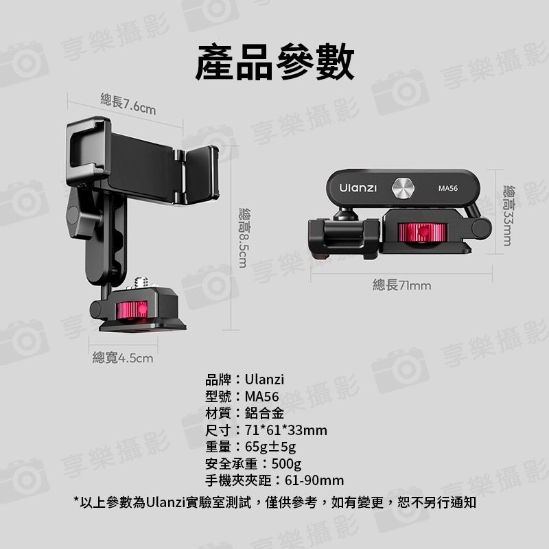 *以上引數為Ulanzi實驗室測試,僅供參考,如有變更,恕不另行通知
