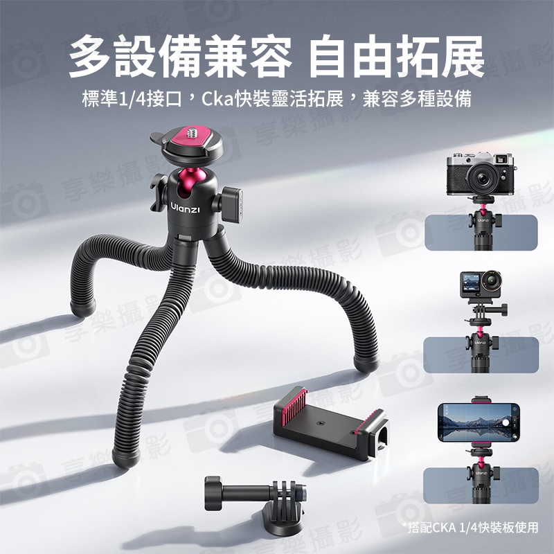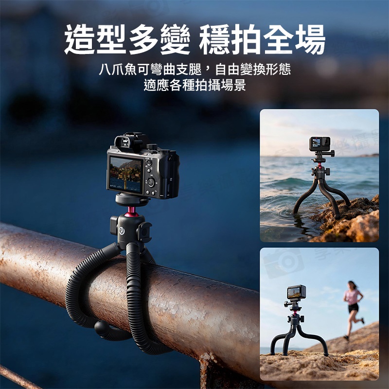 八爪魚可彎曲支腿,自由變換形態,適應各種拍攝場景