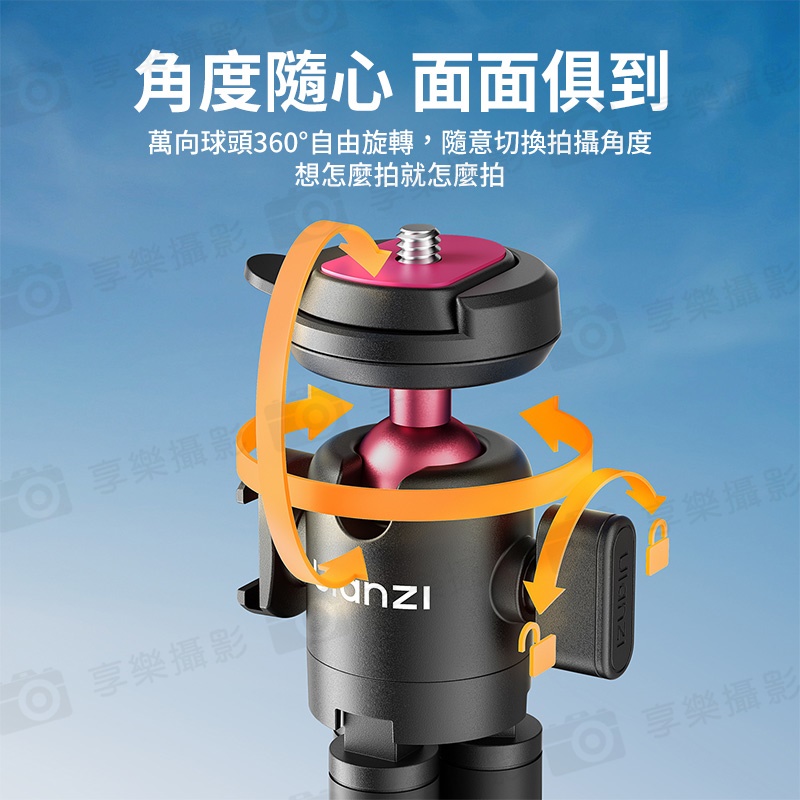 萬向球頭360°自由旋轉,隨意切換拍攝角度,想怎麼拍就怎麼拍