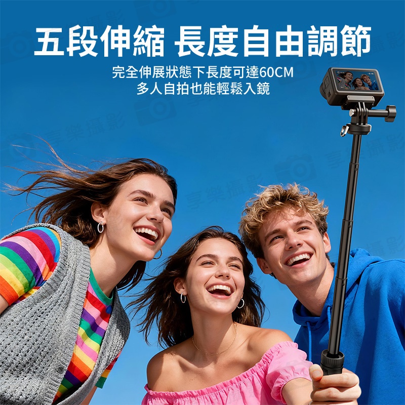 完全伸展狀態下長度可達60CM,多人自拍也能輕鬆入鏡