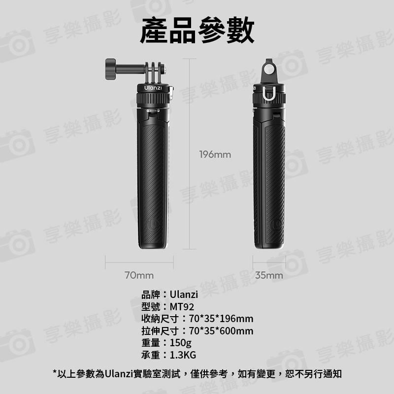 *以上參數為Ulanzi實驗室測試,僅供參考,如有變更,恕不另行通知