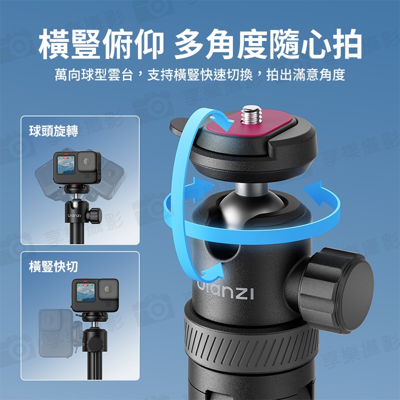 萬向球型雲台,支持橫豎快速切換,拍出滿意角度