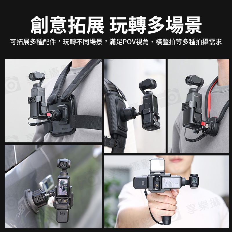 可拓展多種配件,玩轉不同場景,滿足POV視角、橫豎拍等多種拍攝需求