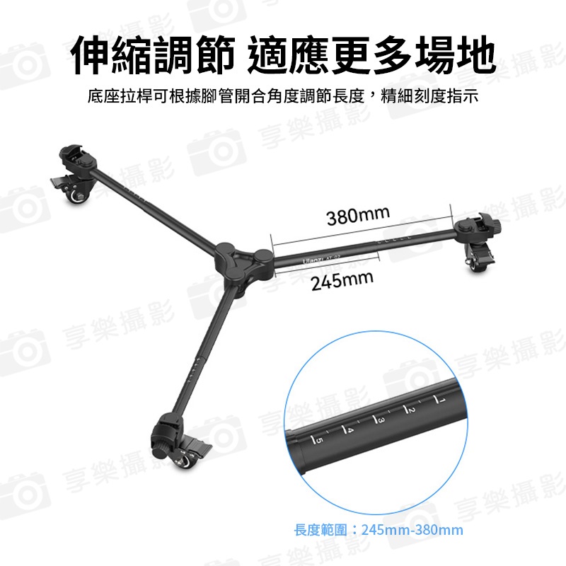 底座拉桿可根據腳管開合角度調節長度,精細刻度指示
