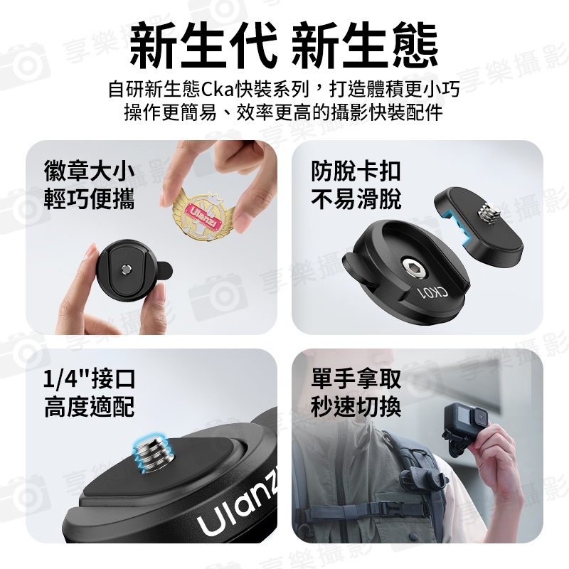 自研新生態Cka快裝系列,打造體積更小巧、操作更簡易、效率更高的攝影快裝配件