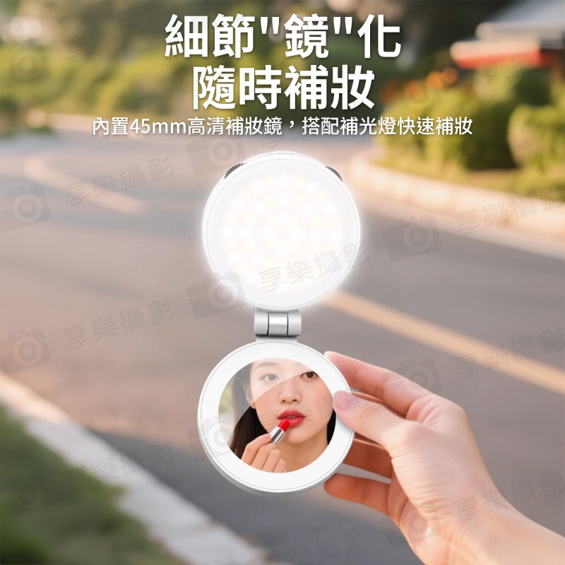 內置45mm高清補妝鏡,搭配補光燈快速補妝