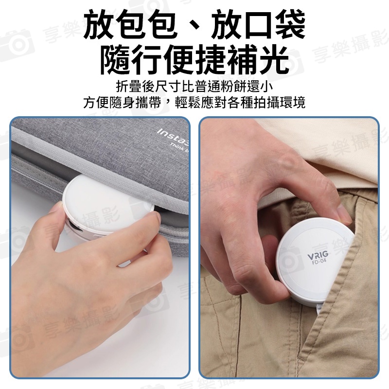 折疊後尺寸比普通粉餅還小,方便隨身攜帶,輕鬆應對各種拍攝環境