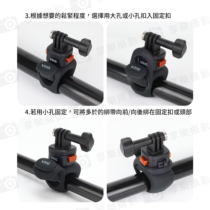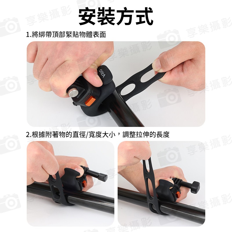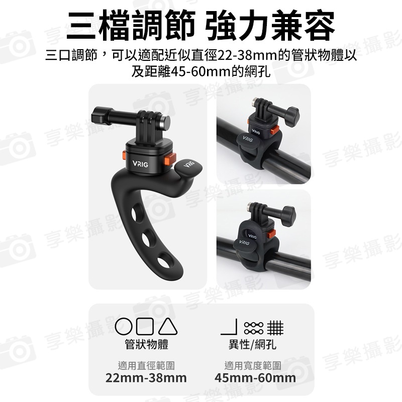 三口調節,可以適配近似直徑22-38mm的管狀物體以及距離45-60mm的網孔