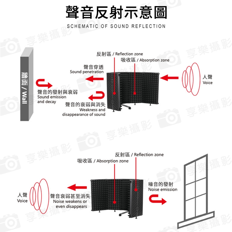高密度尖壁形的聚氧脂海綿能有效捕捉和吸收主聲源,防止聲音反射回被話筒吸收,減少漫射聲波。