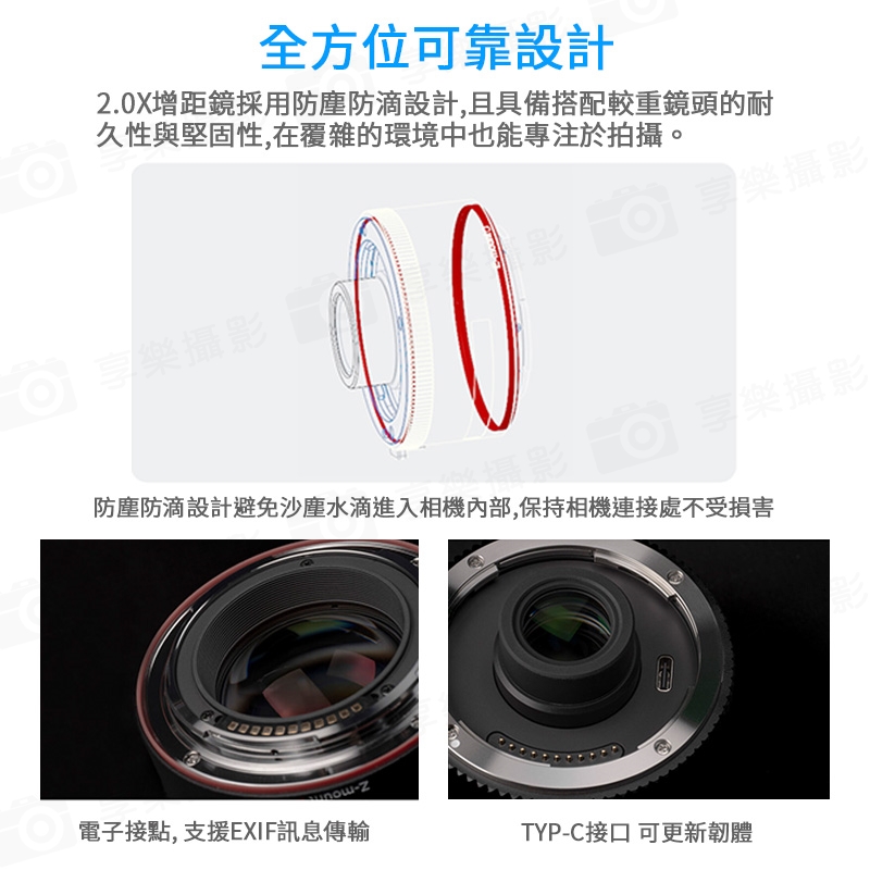 專為尼康Z 接環長焦鏡頭設計優化。內建智慧晶片確保EXIF資訊完整傳輸,