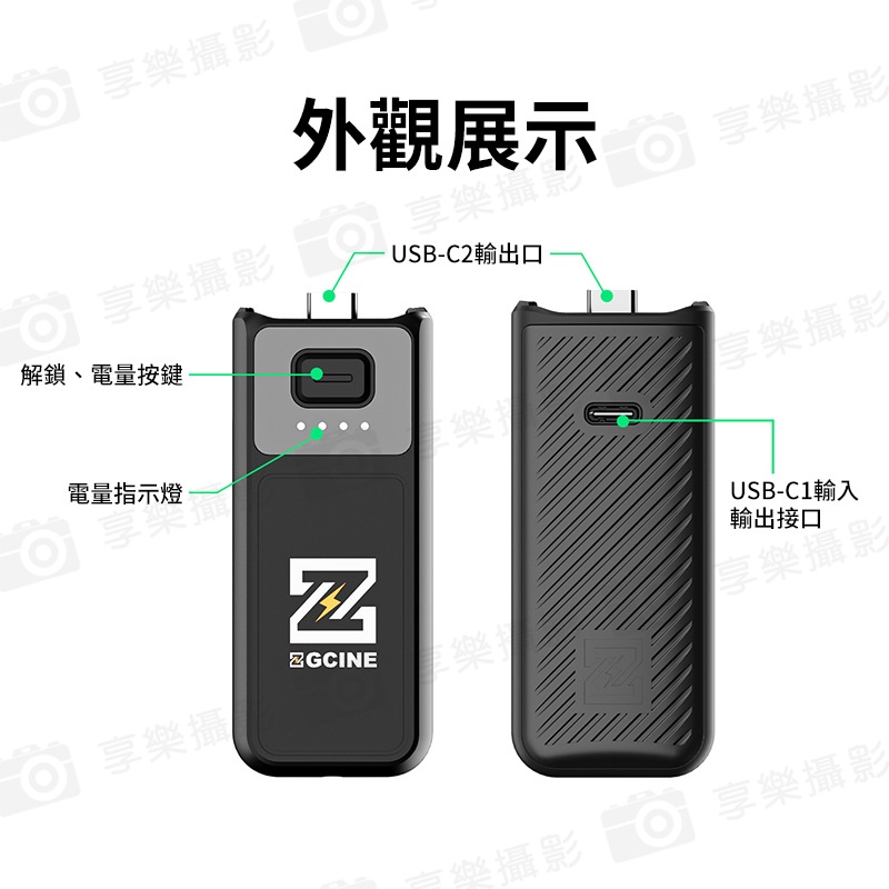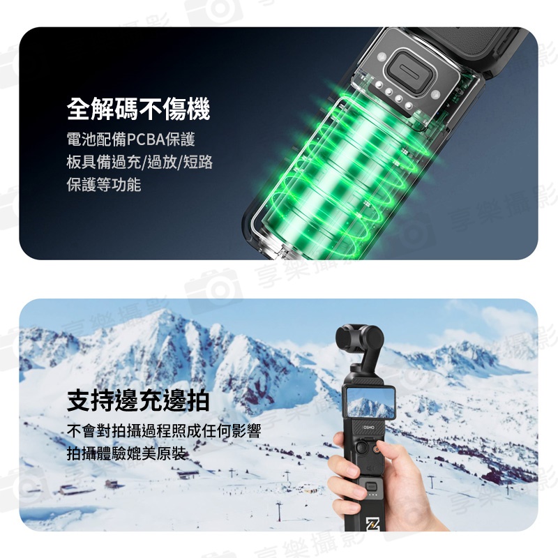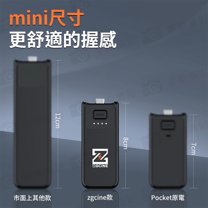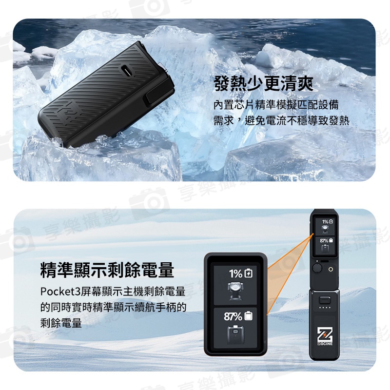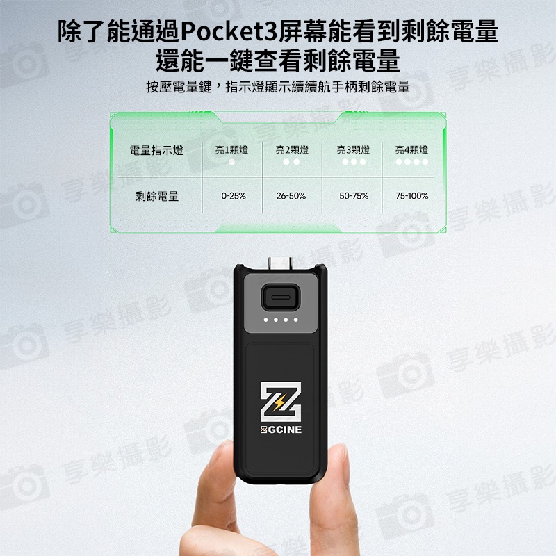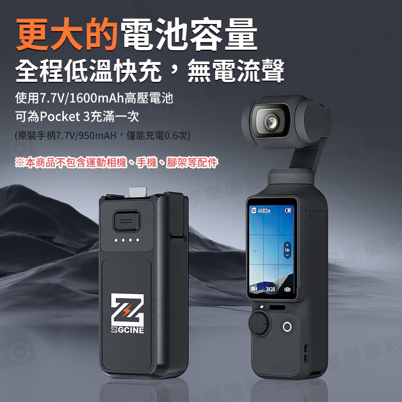 使用7.7V/1600mAh高壓電池,可為Pocket 3充滿一次